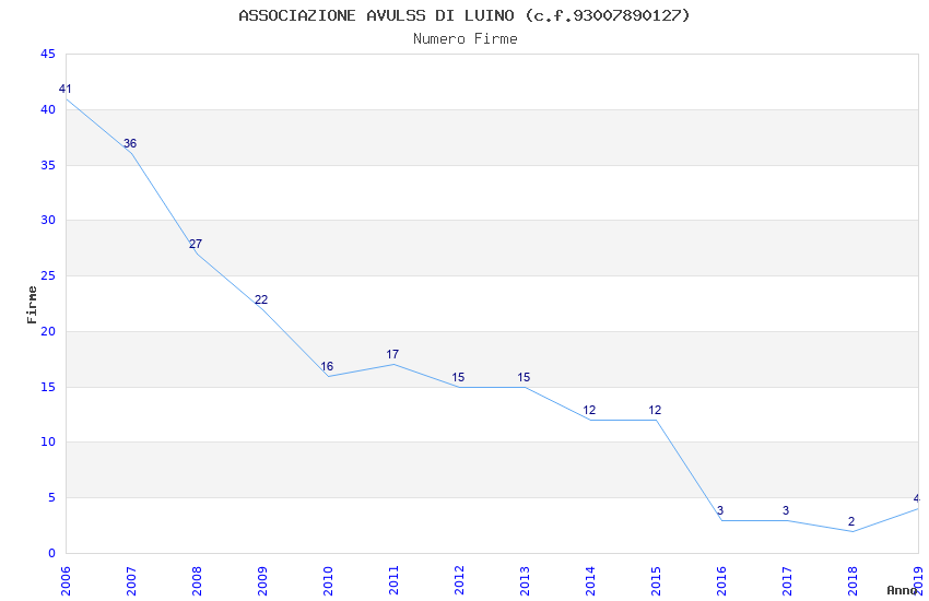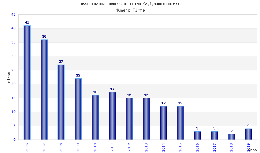 | Anno | Firme | Importi | Media | Naz. | Reg. | Prov. | Comu. |