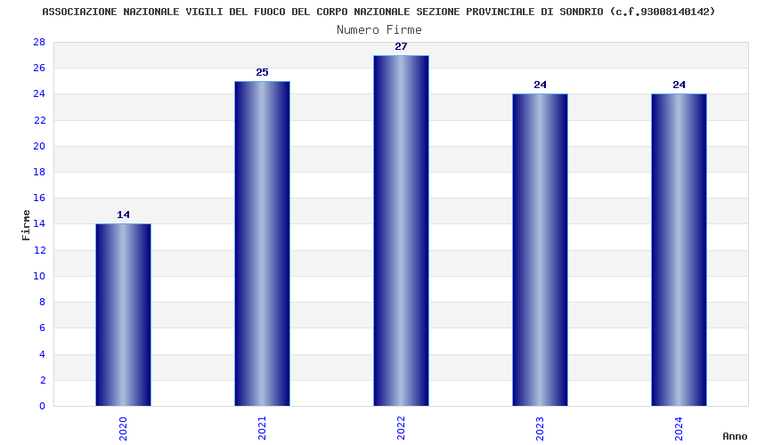 | Anno | Firme | Importi | Media | Naz. | Reg. | Prov. | Comu. |