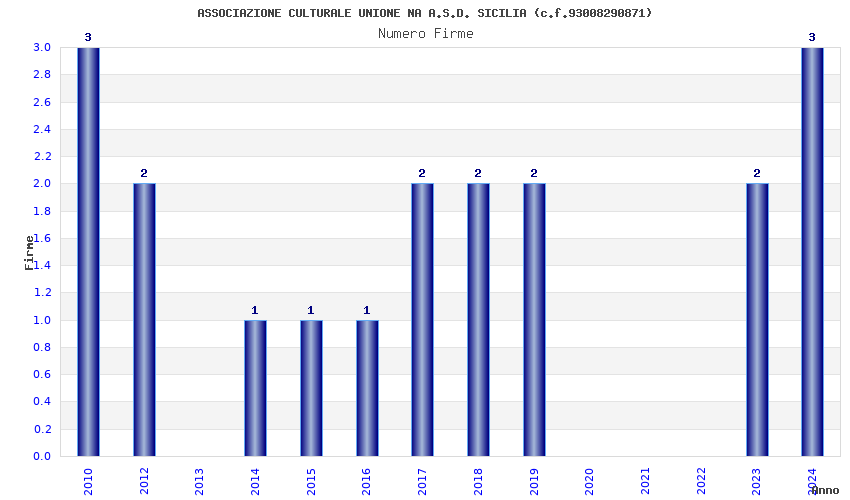 | Anno | Firme | Importi | Media | Naz. | Reg. | Prov. | Comu. |