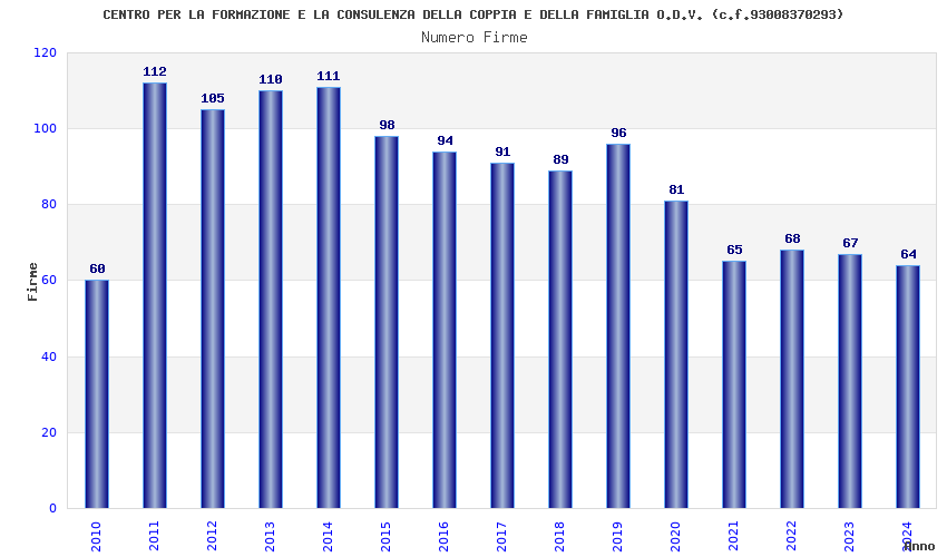 | Anno | Firme | Importi | Media | Naz. | Reg. | Prov. | Comu. |