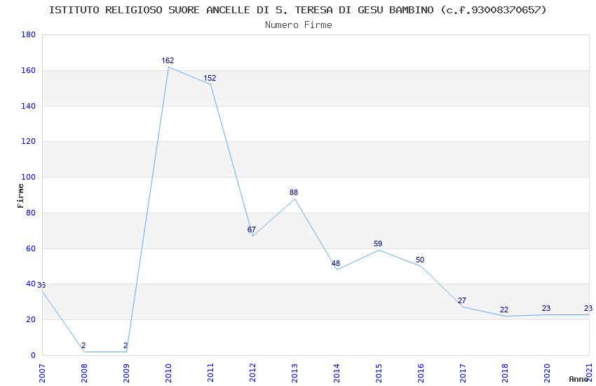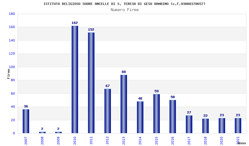 | Anno | Firme | Importi | Media | Naz. | Reg. | Prov. | Comu. |