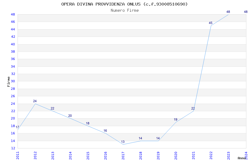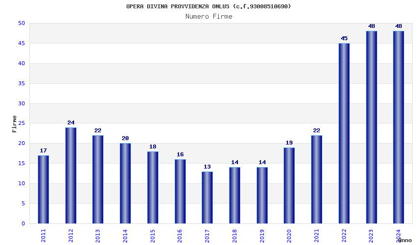 | Anno | Firme | Importi | Media | Naz. | Reg. | Prov. | Comu. |