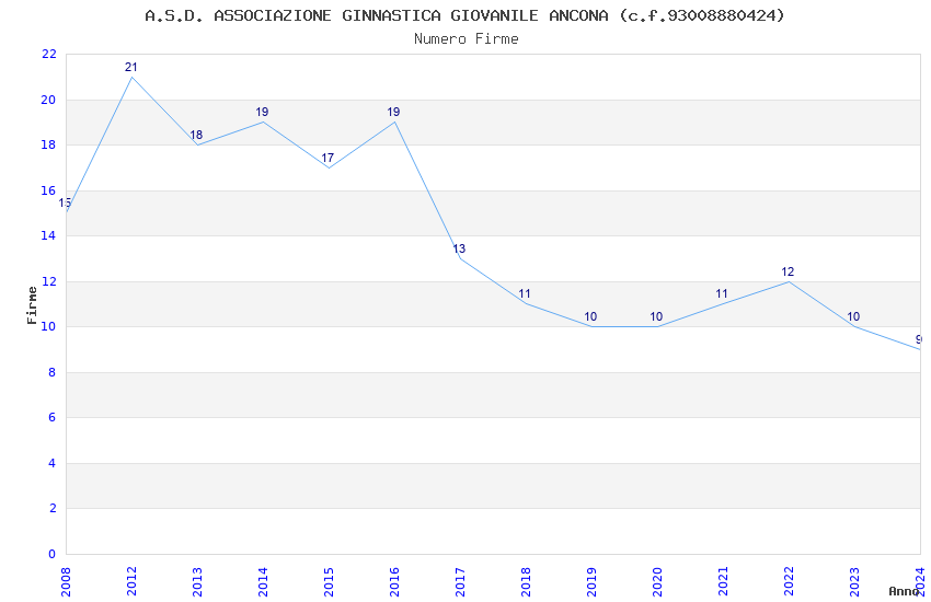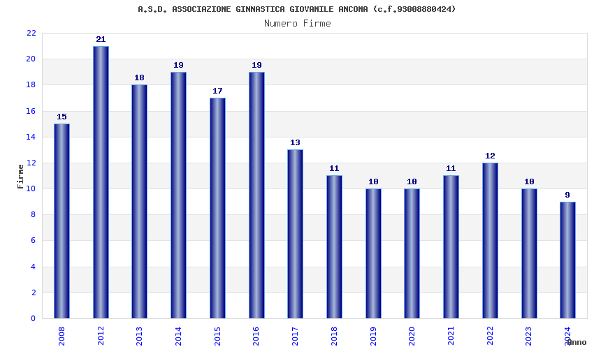 | Anno | Firme | Importi | Media | Naz. | Reg. | Prov. | Comu. |