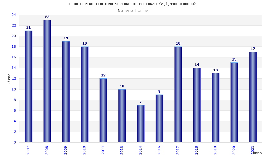 | Anno | Firme | Importi | Media | Naz. | Reg. | Prov. | Comu. |