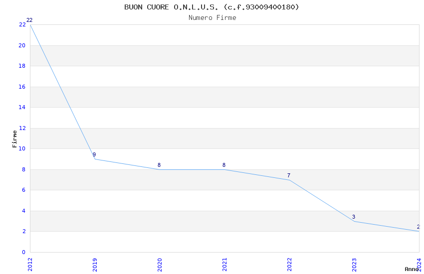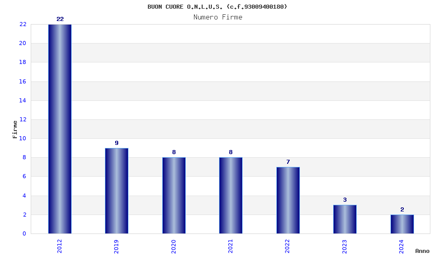 | Anno | Firme | Importi | Media | Naz. | Reg. | Prov. | Comu. |