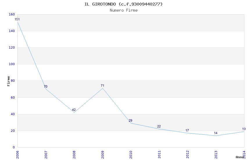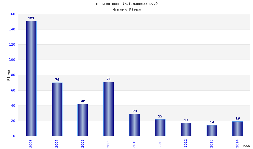 | Anno | Firme | Importi | Media | Naz. | Reg. | Prov. | Comu. |