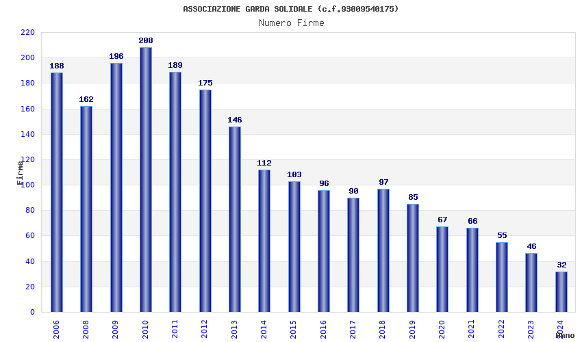 | Anno | Firme | Importi | Media | Naz. | Reg. | Prov. | Comu. |