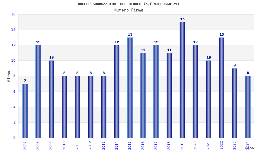 | 2019 | 15 | 395,20 | 26,35 | 48.716 | 9.943 | 1.327 | 32 |