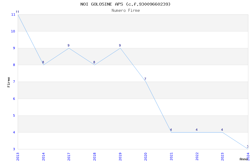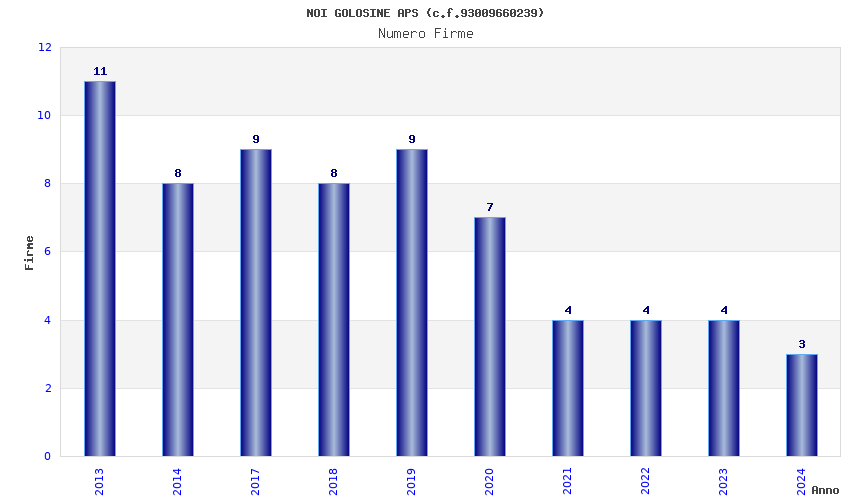 | Anno | Firme | Importi | Media | Naz. | Reg. | Prov. | Comu. |