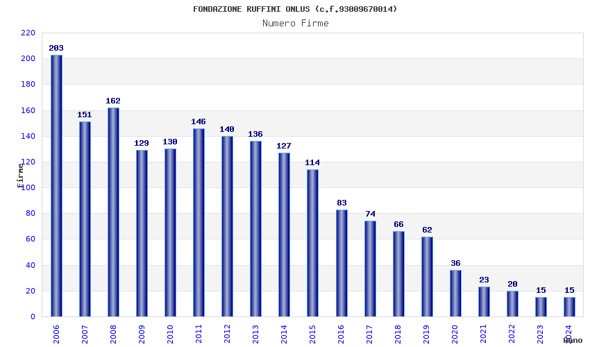 | Anno | Firme | Importi | Media | Naz. | Reg. | Prov. | Comu. |