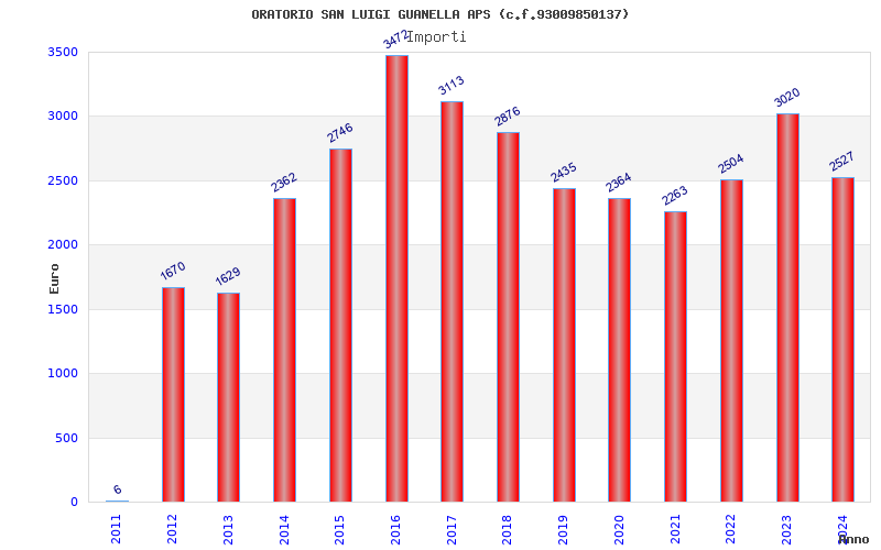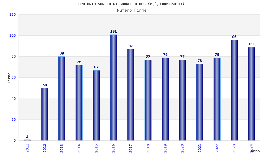 | Anno | Firme | Importi | Media | Naz. | Reg. | Prov. | Comu. |