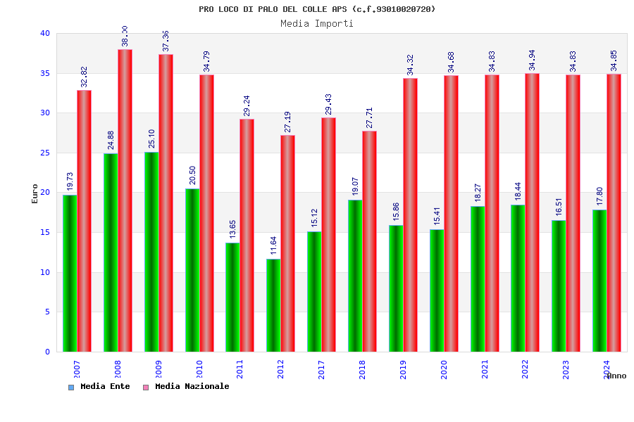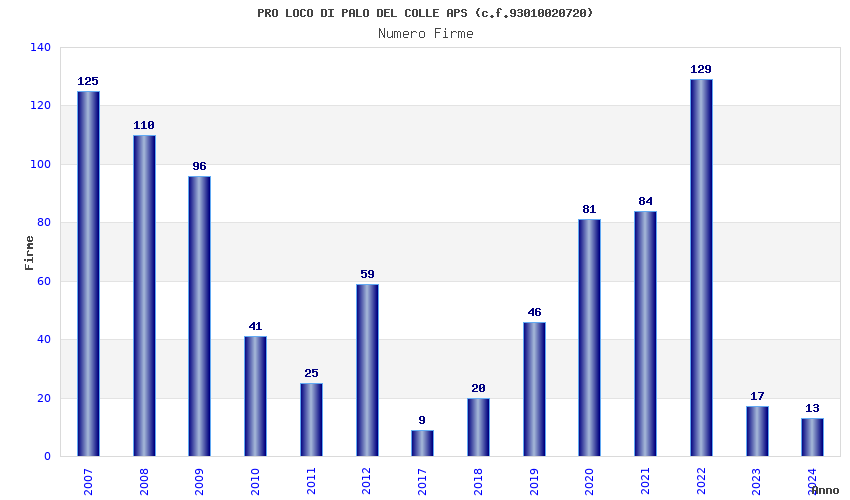 | Anno | Firme | Importi | Media | Naz. | Reg. | Prov. | Comu. |