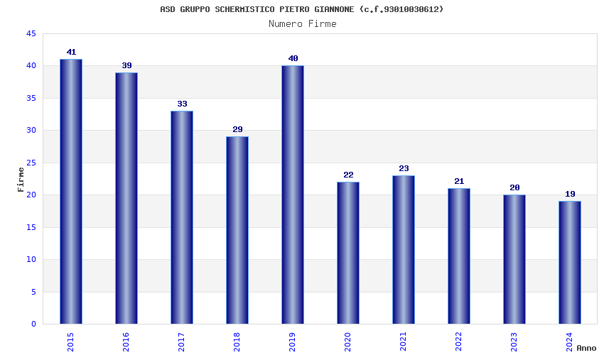 | Anno | Firme | Importi | Media | Naz. | Reg. | Prov. | Comu. |