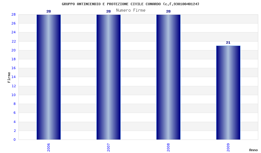 | Anno | Firme | Importi | Media | Naz. | Reg. | Prov. | Comu. |