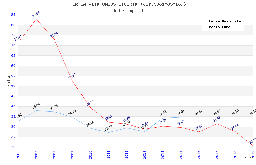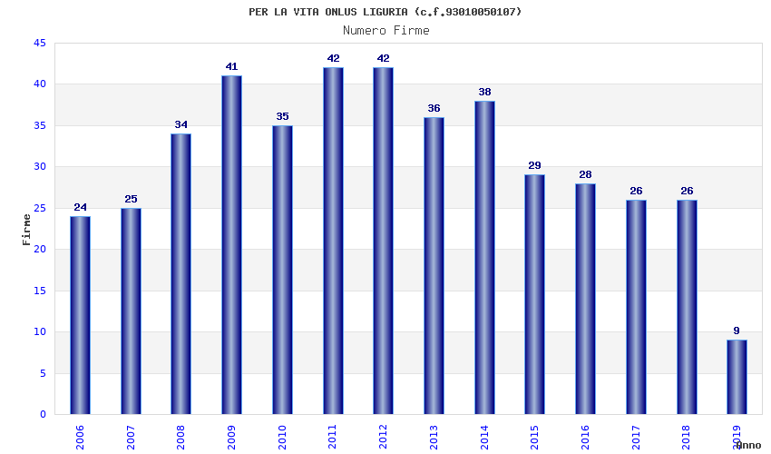 | Anno | Firme | Importi | Media | Naz. | Reg. | Prov. | Comu. |