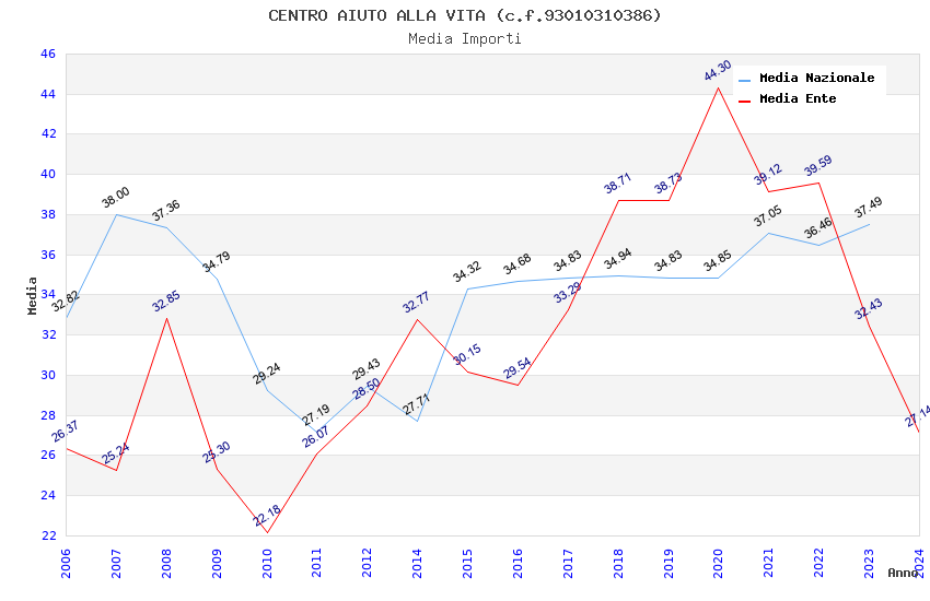 | Anno | Firme | Importi | Media | Naz. | Reg. | Prov. | Comu. |