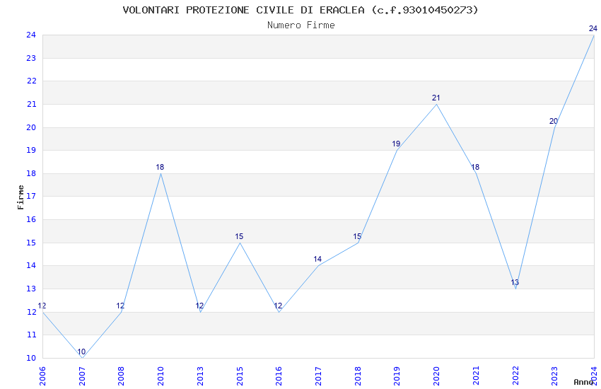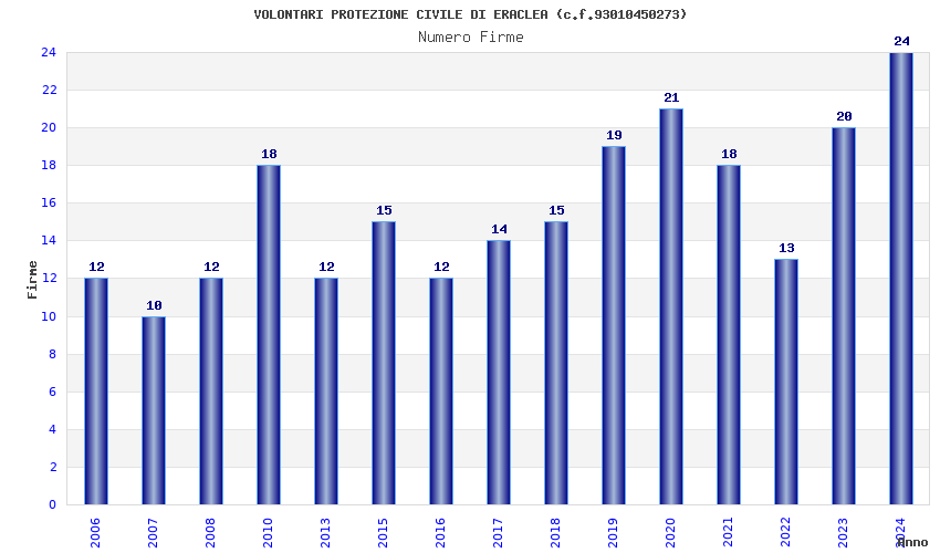 | Anno | Firme | Importi | Media | Naz. | Reg. | Prov. | Comu. |