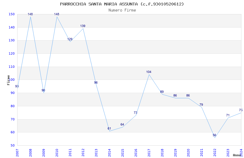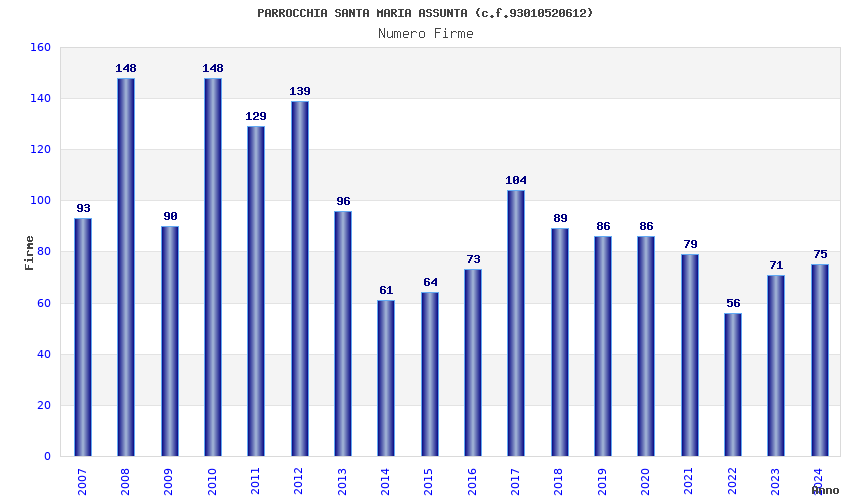 | Anno | Firme | Importi | Media | Naz. | Reg. | Prov. | Comu. |