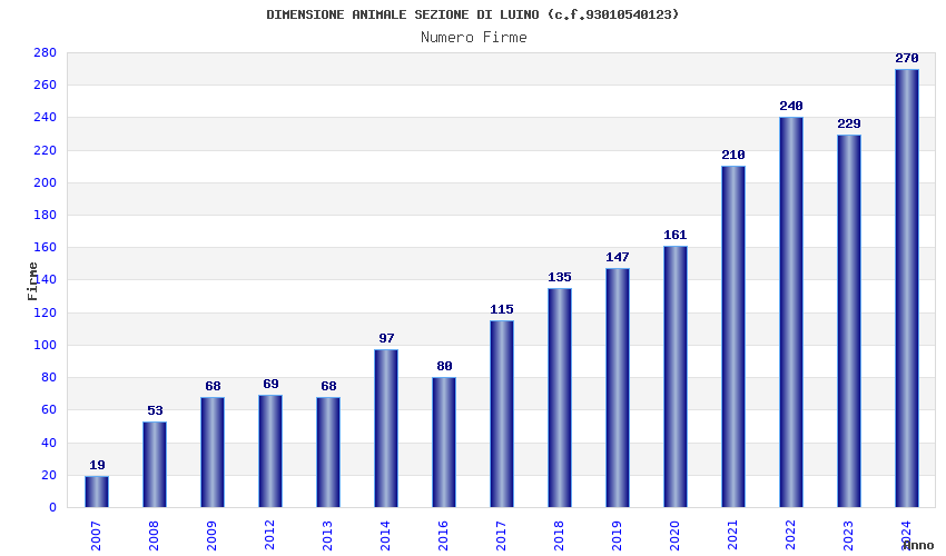| Anno | Firme | Importi | Media | Naz. | Reg. | Prov. | Comu. |