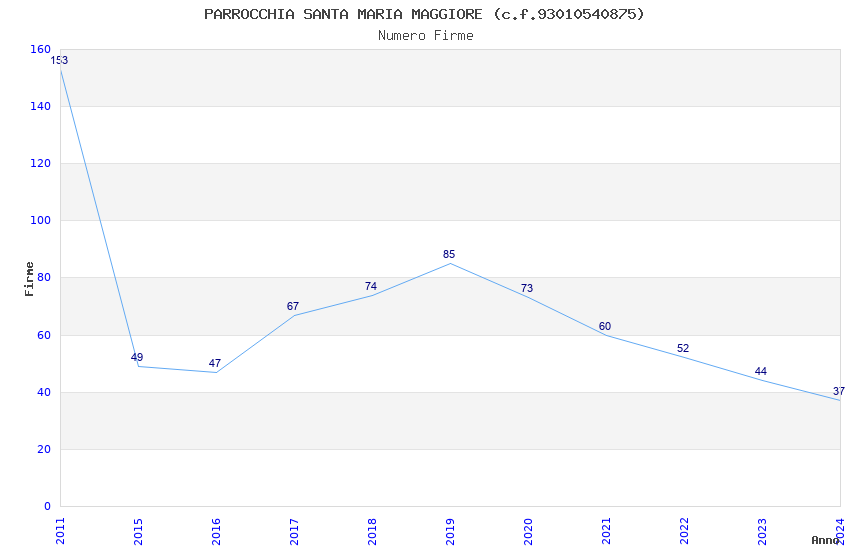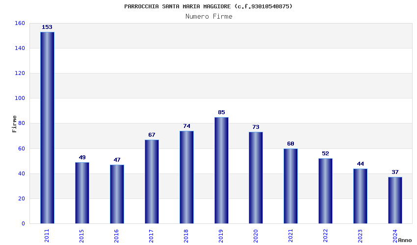 | Anno | Firme | Importi | Media | Naz. | Reg. | Prov. | Comu. |