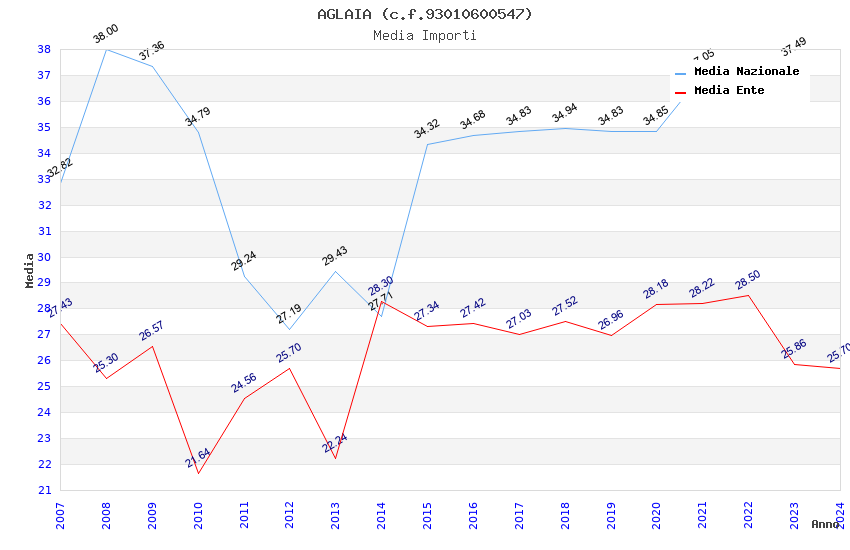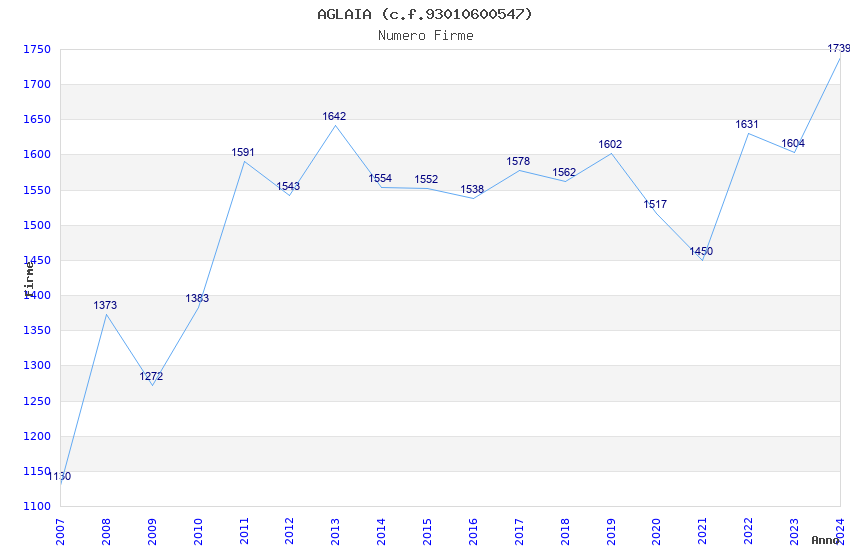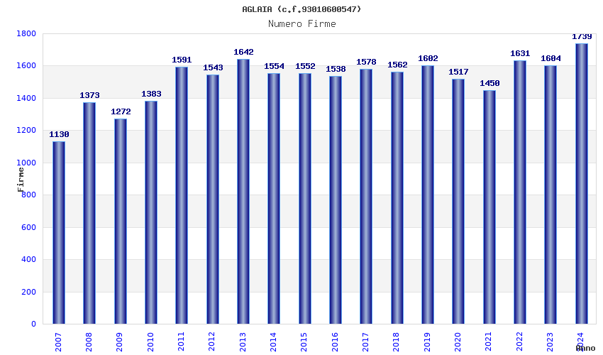 | Anno | Firme | Importi | Media | Naz. | Reg. | Prov. | Comu. |