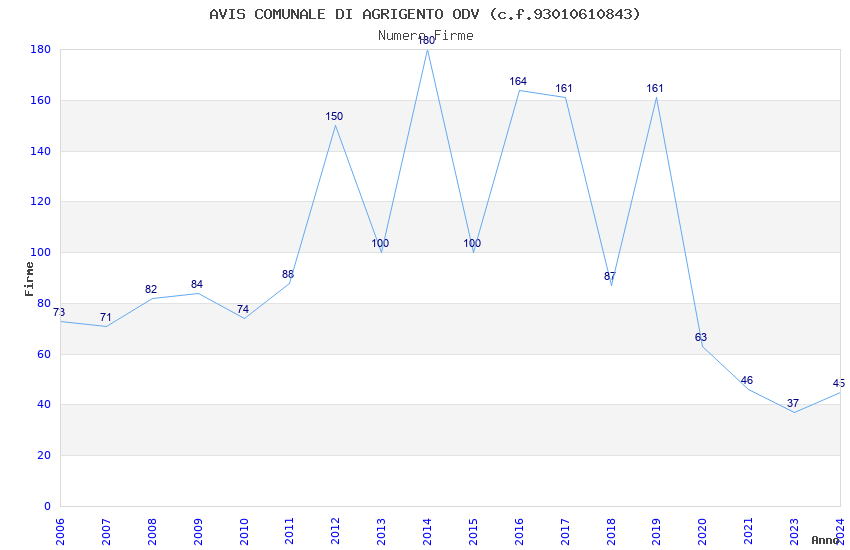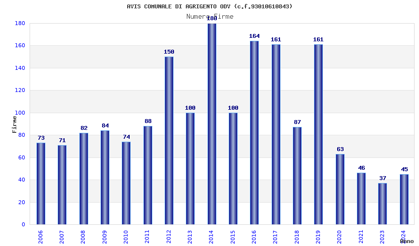 | Anno | Firme | Importi | Media | Naz. | Reg. | Prov. | Comu. |