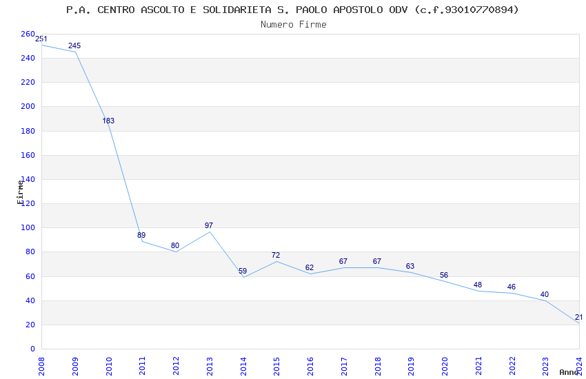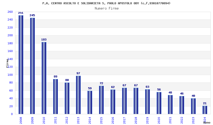 | Anno | Firme | Importi | Media | Naz. | Reg. | Prov. | Comu. |