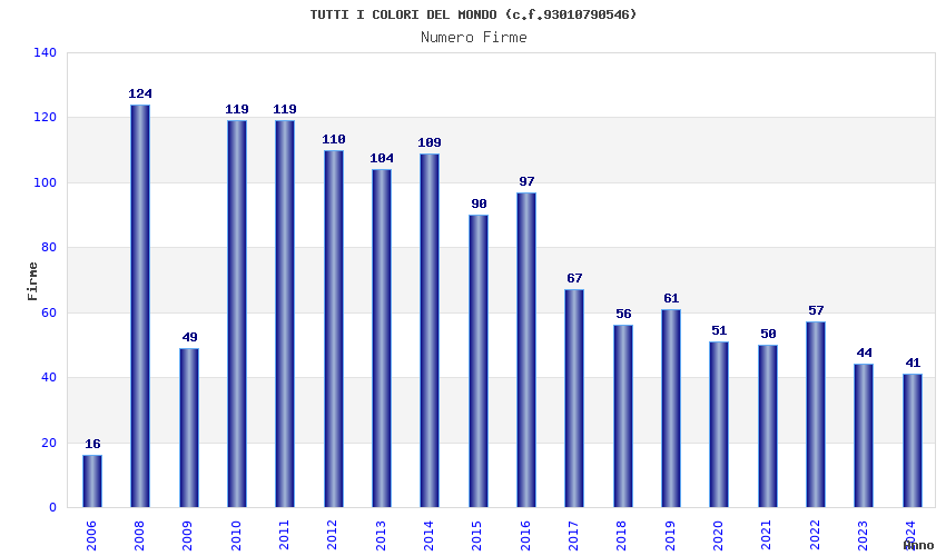 | Anno | Firme | Importi | Media | Naz. | Reg. | Prov. | Comu. |