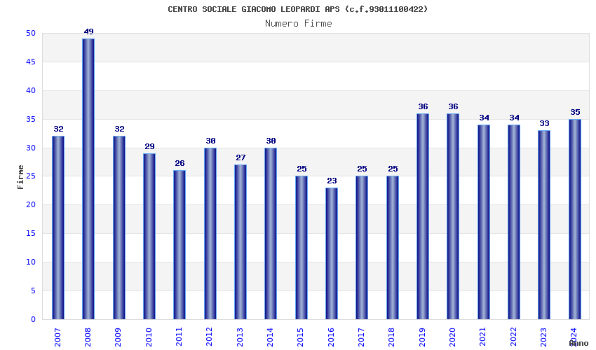 | Anno | Firme | Importi | Media | Naz. | Reg. | Prov. | Comu. |
