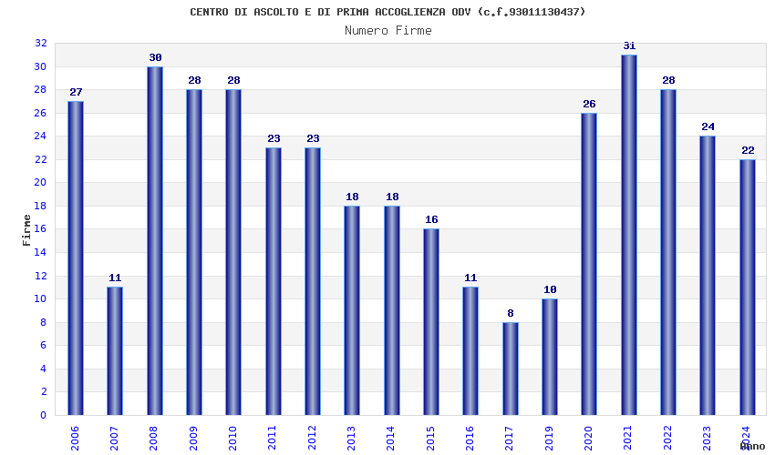 | 2006 | 27 | 754,72 | 27,95 | 21.385 | 644 | 115 | 24 |