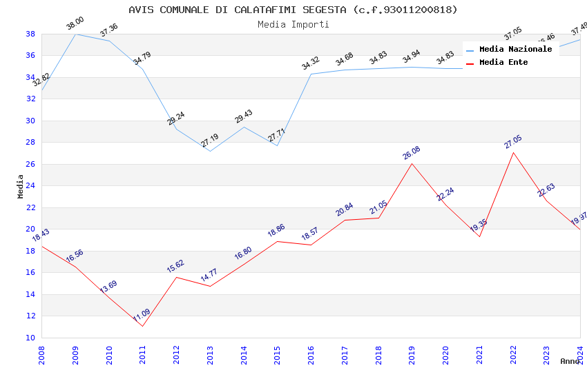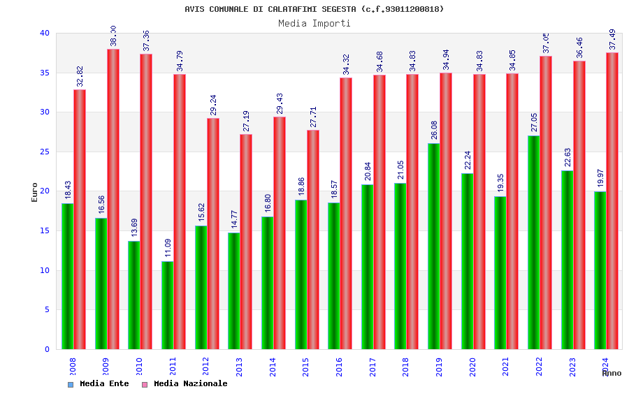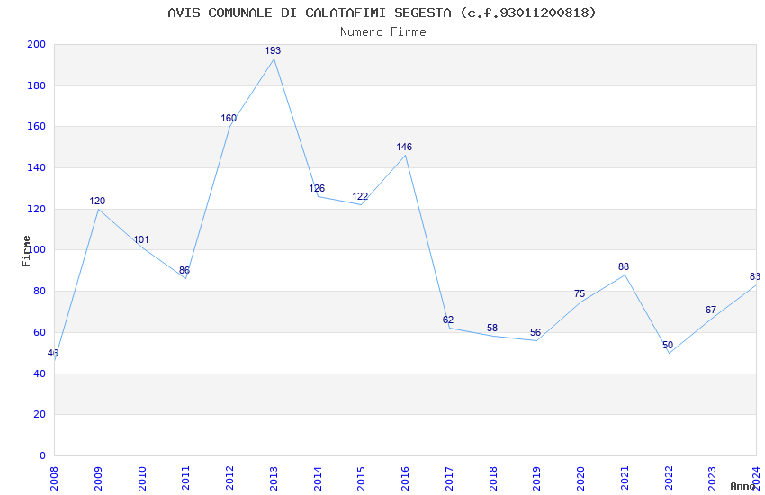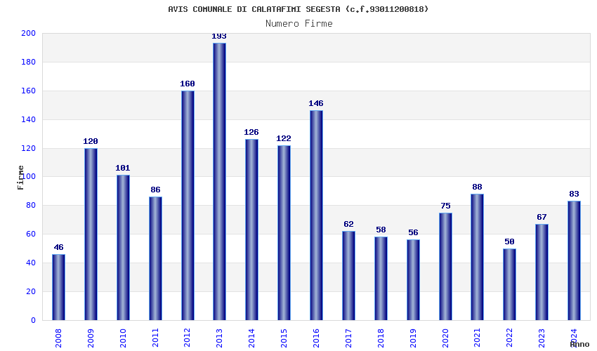 | Anno | Firme | Importi | Media | Naz. | Reg. | Prov. | Comu. |
