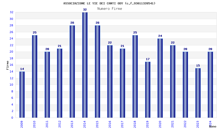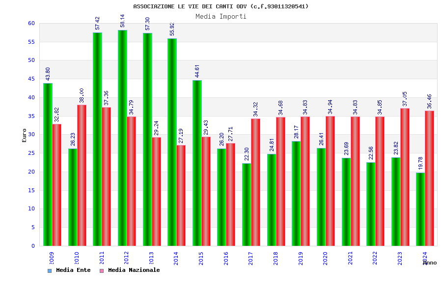 | Anno | Firme | Importi | Media | Naz. | Reg. | Prov. | Comu. |