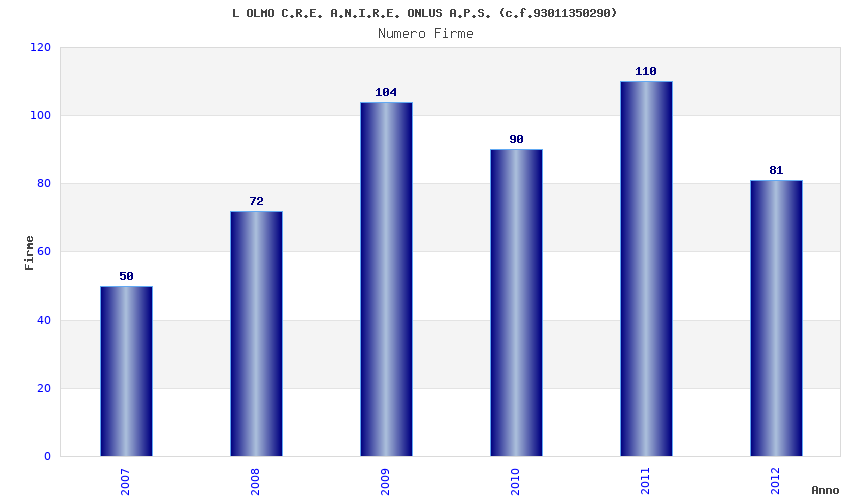 | Anno | Firme | Importi | Media | Naz. | Reg. | Prov. | Comu. |