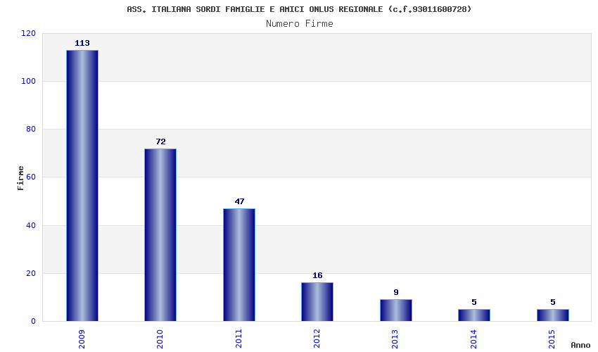 | Anno | Firme | Importi | Media | Naz. | Reg. | Prov. | Comu. |