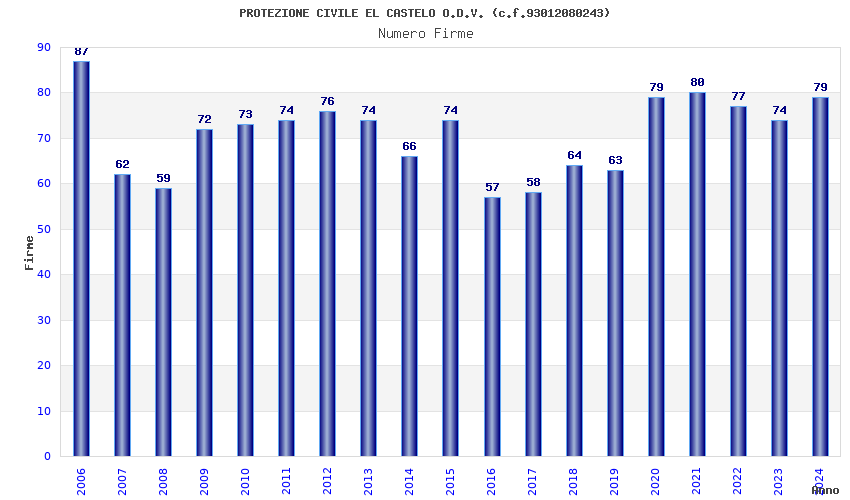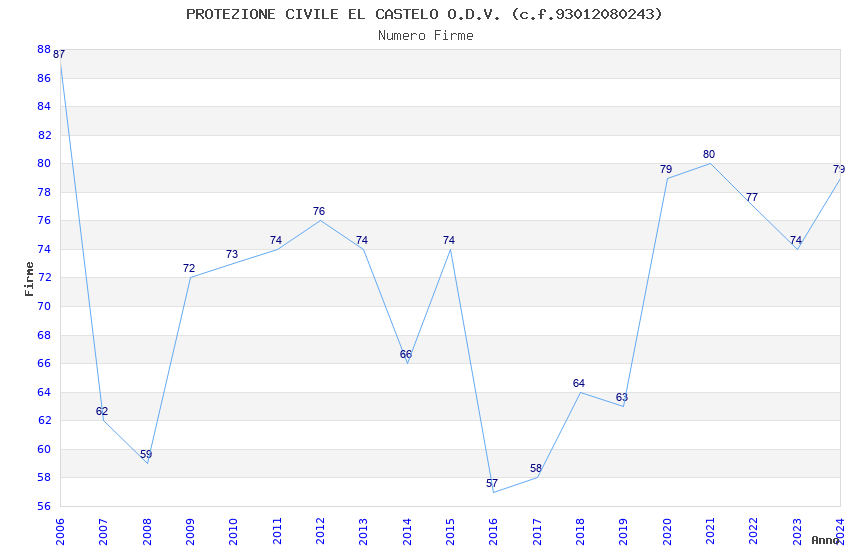 | 2021 | 80 | 2.206,79 | 27,58 | 22.283 | 2.058 | 365 | 4 |