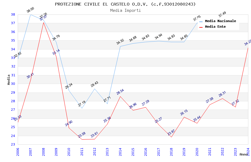 | Anno | Firme | Importi | Media | Naz. | Reg. | Prov. | Comu. |
