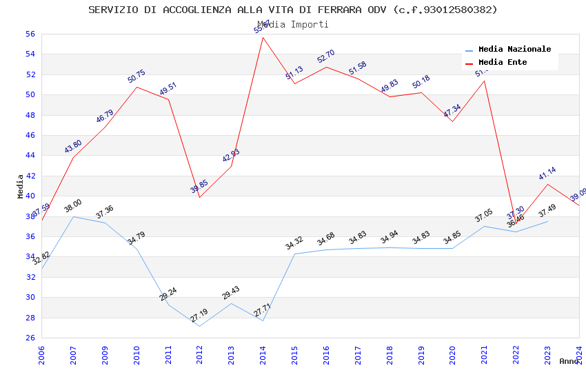 | Anno | Firme | Importi | Media | Naz. | Reg. | Prov. | Comu. |