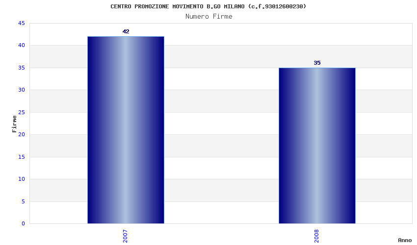 | Anno | Firme | Importi | Media | Naz. | Reg. | Prov. | Comu. |