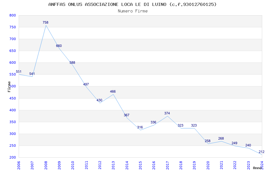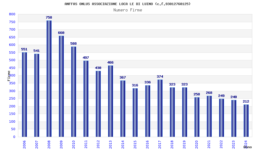 | Anno | Firme | Importi | Media | Naz. | Reg. | Prov. | Comu. |
