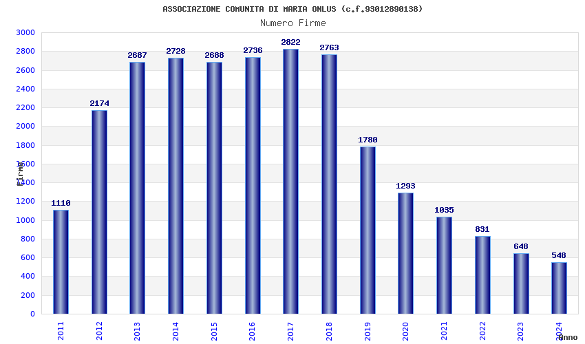 | Anno | Firme | Importi | Media | Naz. | Reg. | Prov. | Comu. |
