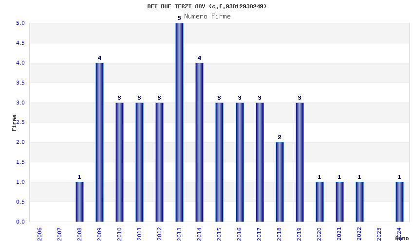 | Anno | Firme | Importi | Media | Naz. | Reg. | Prov. | Comu. |