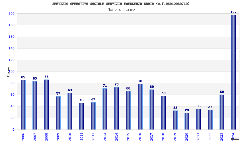 | Anno | Firme | Importi | Media | Naz. | Reg. | Prov. | Comu. |
