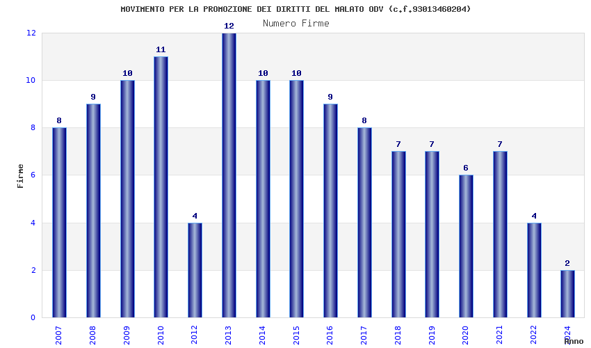 | Anno | Firme | Importi | Media | Naz. | Reg. | Prov. | Comu. |