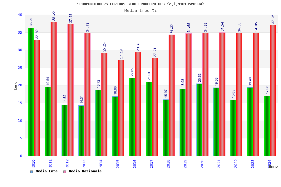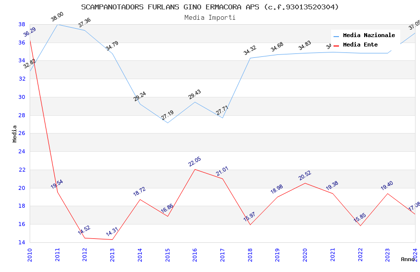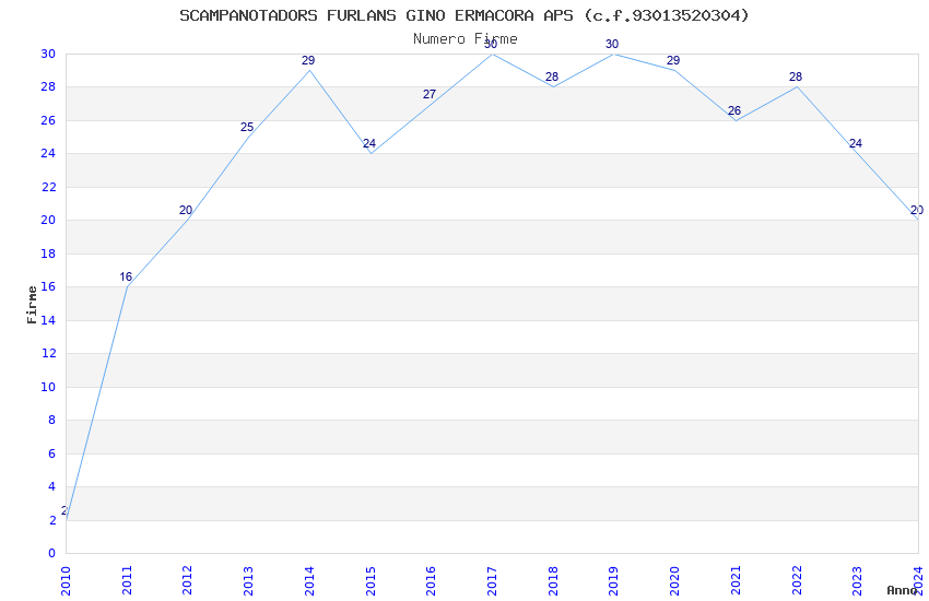 | Anno | Firme | Importi | Media | Naz. | Reg. | Prov. | Comu. |