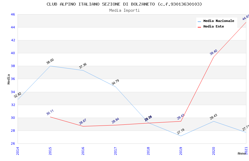 | Anno | Firme | Importi | Media | Naz. | Reg. | Prov. | Comu. |