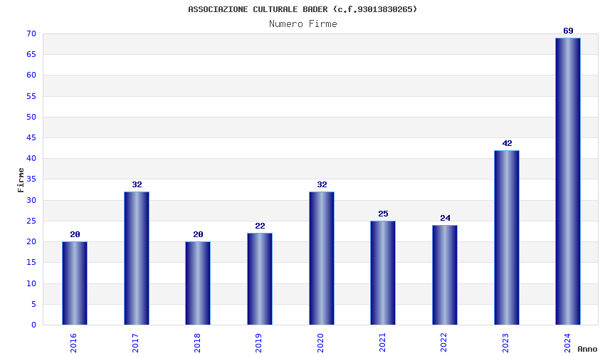 | Anno | Firme | Importi | Media | Naz. | Reg. | Prov. | Comu. |