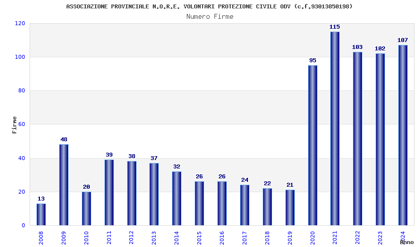 Anno Firme Importi Media Naz. Reg. Prov. Comu.