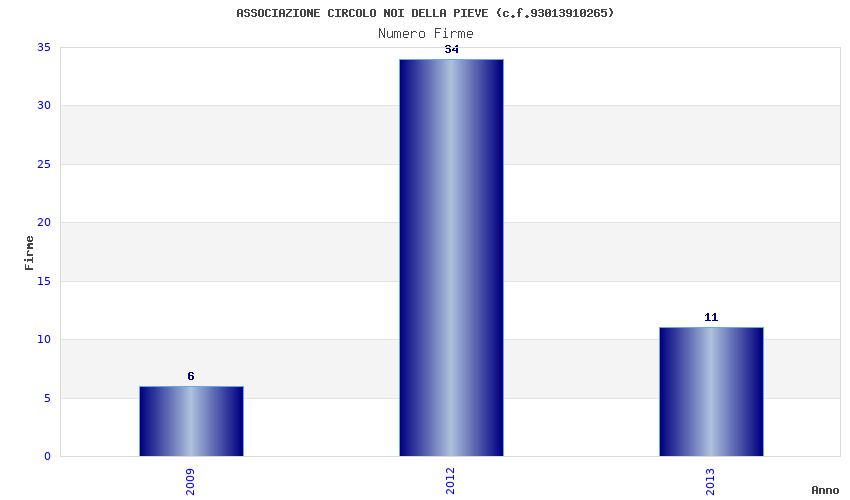 | Anno | Firme | Importi | Media | Naz. | Reg. | Prov. | Comu. |