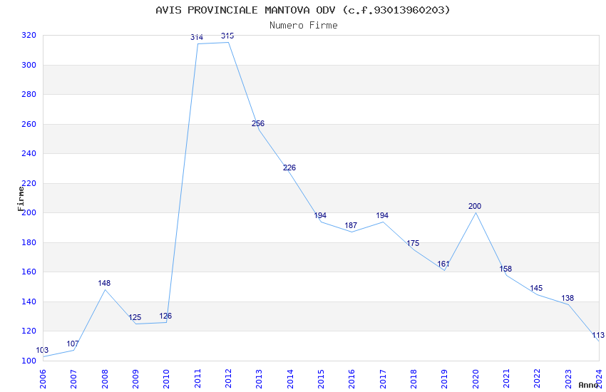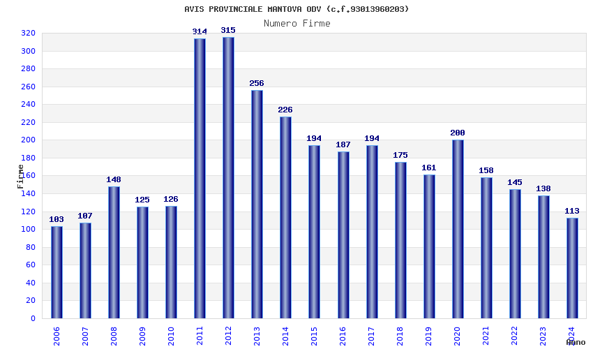 | Anno | Firme | Importi | Media | Naz. | Reg. | Prov. | Comu. |