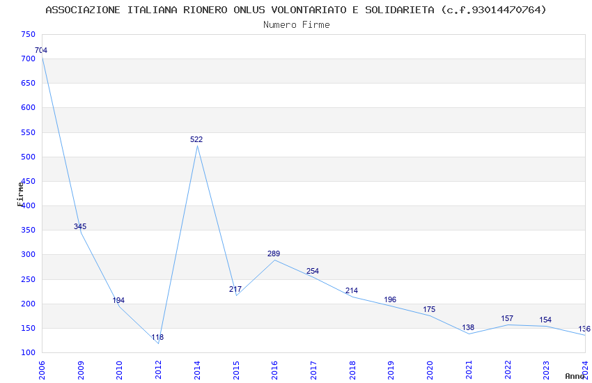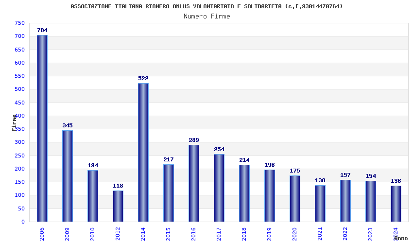 | Anno | Firme | Importi | Media | Naz. | Reg. | Prov. | Comu. |